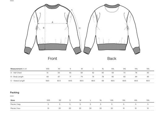 1x1 rib at neck collar, sleeve cuff and bottom hem Inside back neck tape in Herringbone